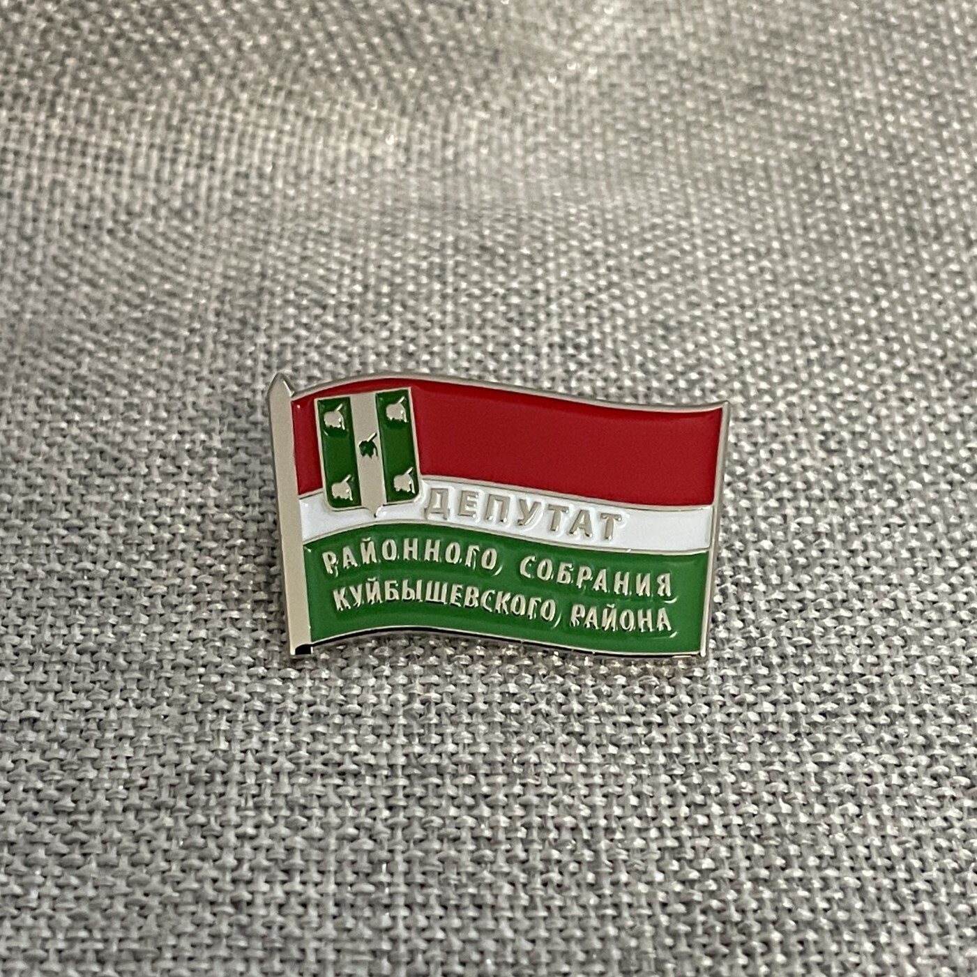 -штампованный значок из латуни с холодной эмалью( самый распространенный и не дорогой способ изготовления депутатского значка. Рельеф такого значка ощущается на ощупь. Если этого необходимо избежать, значок можно покрыть эпоксидной смолой. Тогда на значке появится небольшая линза, которая придаст изделию дополнительный блеск)